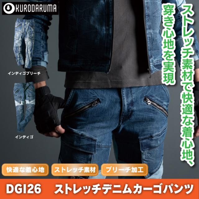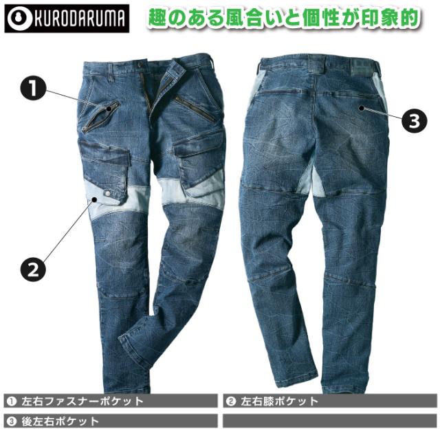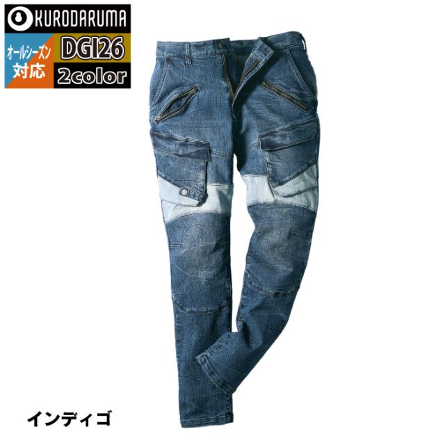 クロダルマ 作業服 作業ズボン DG126 ストレッチデニムカーゴパンツ S-LL オールシーズン