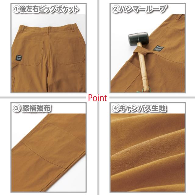 ◇機能:ハンマーループ・後左右ビッグポケット・膝補強布・キャンバス生地