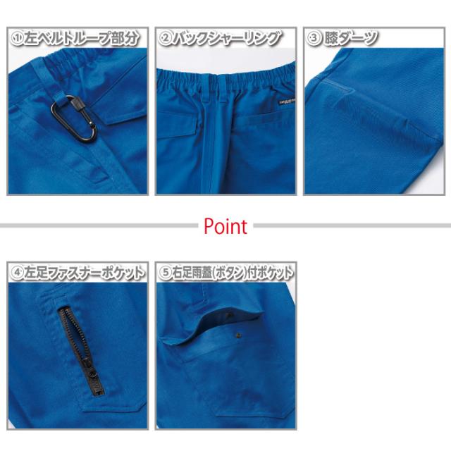 ◇機能:膝ダーツ・左ベルトループ部分カラビナループ付(2ヶ所)・バックシャーリング・右足雨蓋(ボタン)付ポケット・左足ファスナーポケット・ファスナー金属・ボタン樹脂