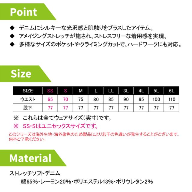 ディッキーズ Dickies 作業服 作業着 オールシーズン D-2905 ストレッチシルキーデニムカーゴ SS-6L