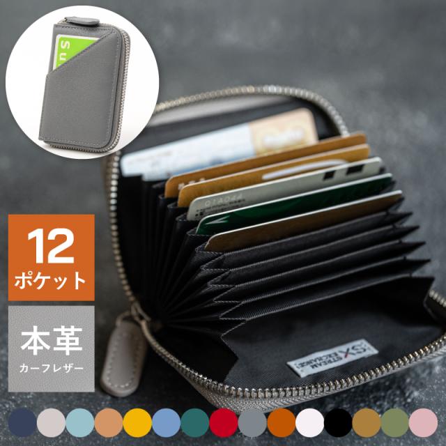 カードケース 12ポケット 本革 革 メンズ レディース 大容量 じゃばら スキミング防止 カーフレザー ミニ財布 外ポケット Stream exchange 20代 30代 40代 50代 60代