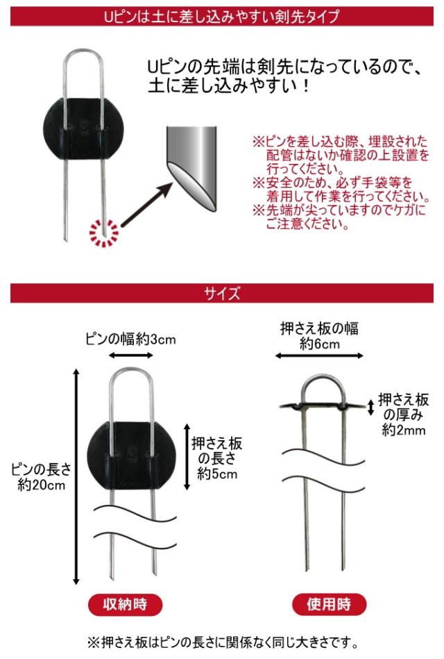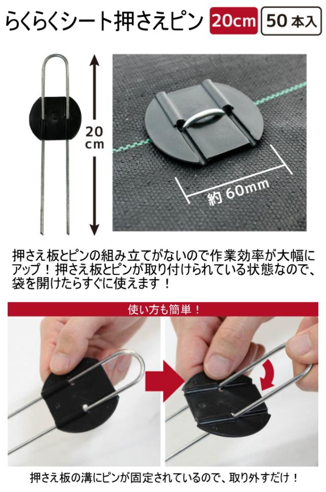 らくらくシート押さえピン 長さ20cm 50本入 園芸 庭 畑 杭 防草シート シート固定 押さえ ピン Uピン 簡単 便利