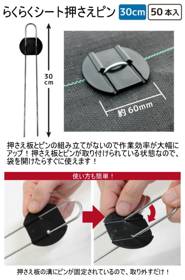らくらくシート押さえピン 長さ30cm 50本入 園芸 庭 畑 杭 防草シート シート固定 押さえ ピン Uピン 簡単 便利