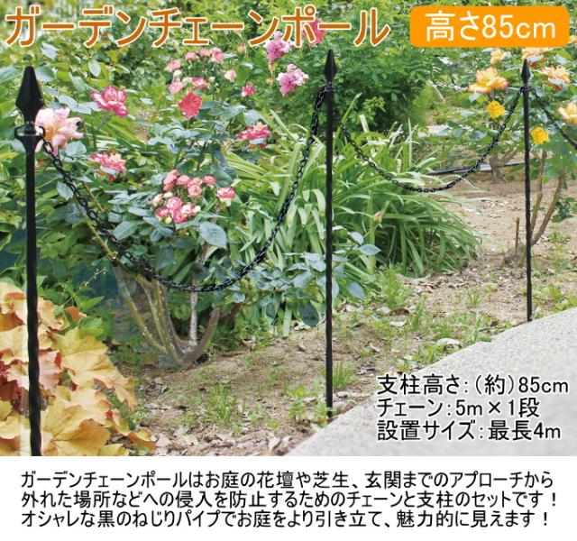 ガーデンチェーンポール 高さ85cm ブラック H-85 園芸 花壇 芝生 チェーン付き 支柱 簡単 便利 お庭 玄関 おしゃれ