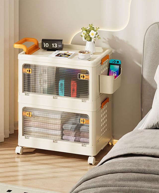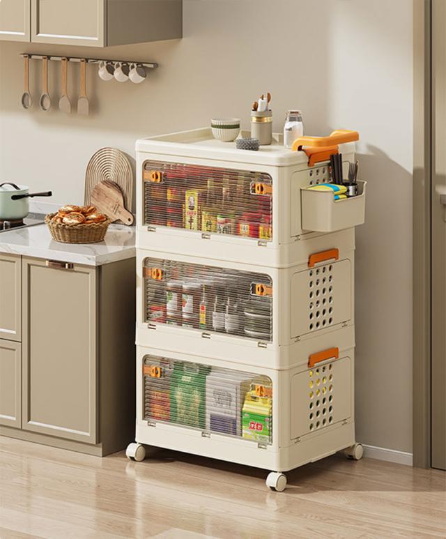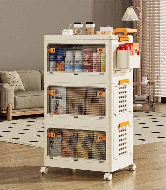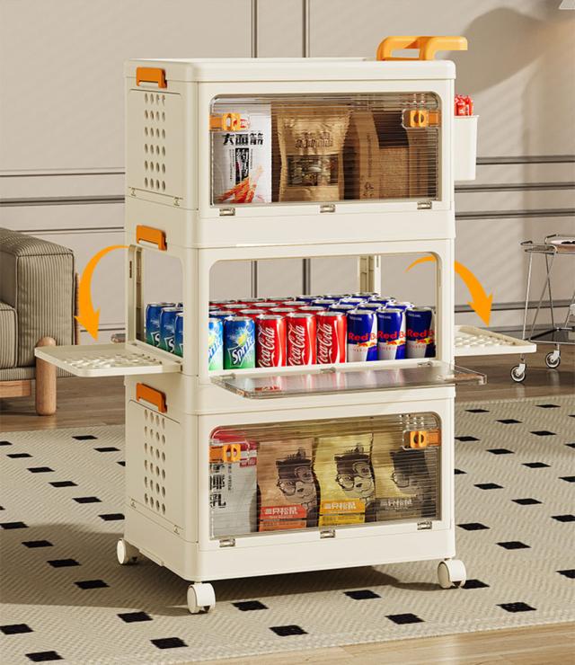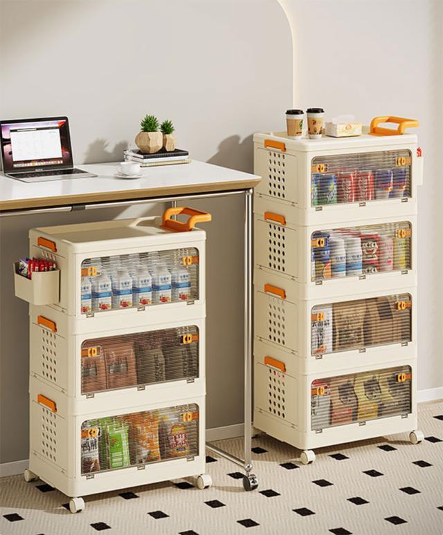 キッチンワゴン 折りたたみ 収納ボックス キャスター付き サイドワゴン 引き扉 蓋付き 多目的ワゴン 多目的収納 収納棚 おしゃれ