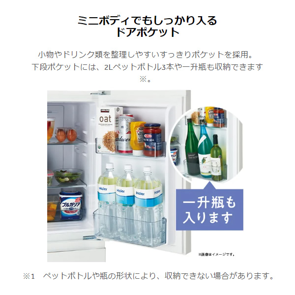 ※1 ペットボトルや瓶の形状により、収納できない場合があります。