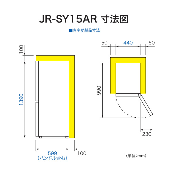 [予約 約1週間以降]【京都は標準設置込み】冷蔵庫 Haier ハイアール 148L 2ドア 右開き ホワイト JR-SY15AR-W