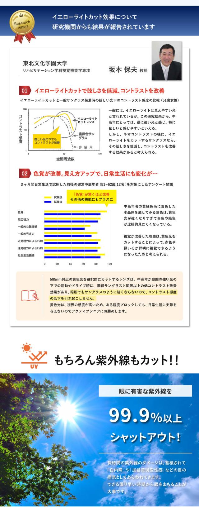 ・黄色の光を青 赤 緑 の コントラスト がより鮮明になり、景色が鮮やかに見える( ネオコントラスト テクノロジー )