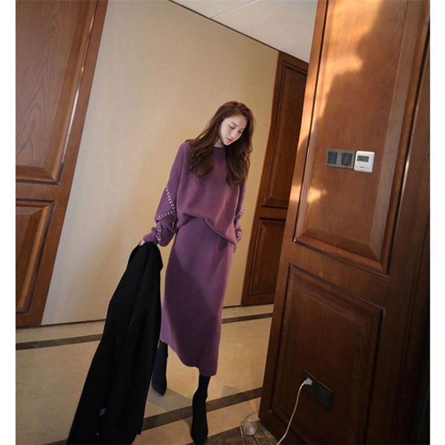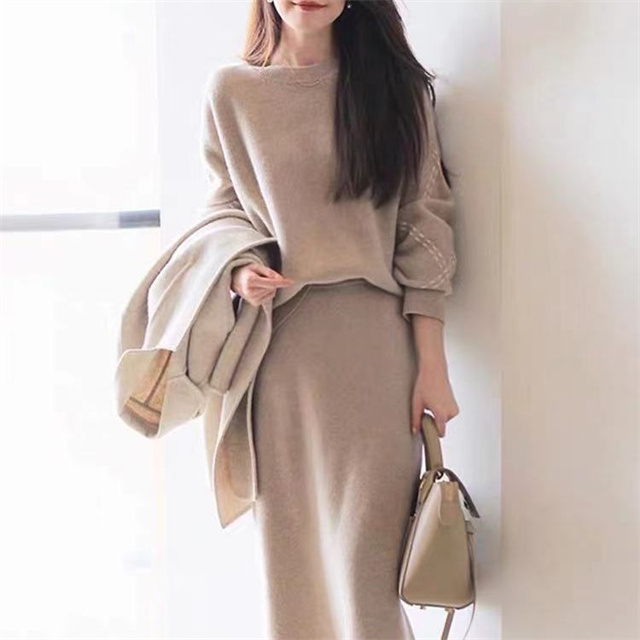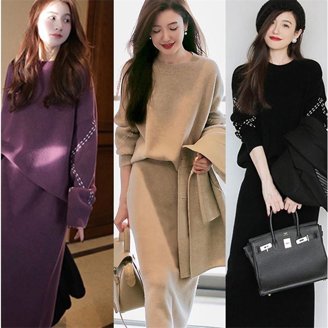 セット内容:長袖 ニットトップス+ ニットタイトスカート