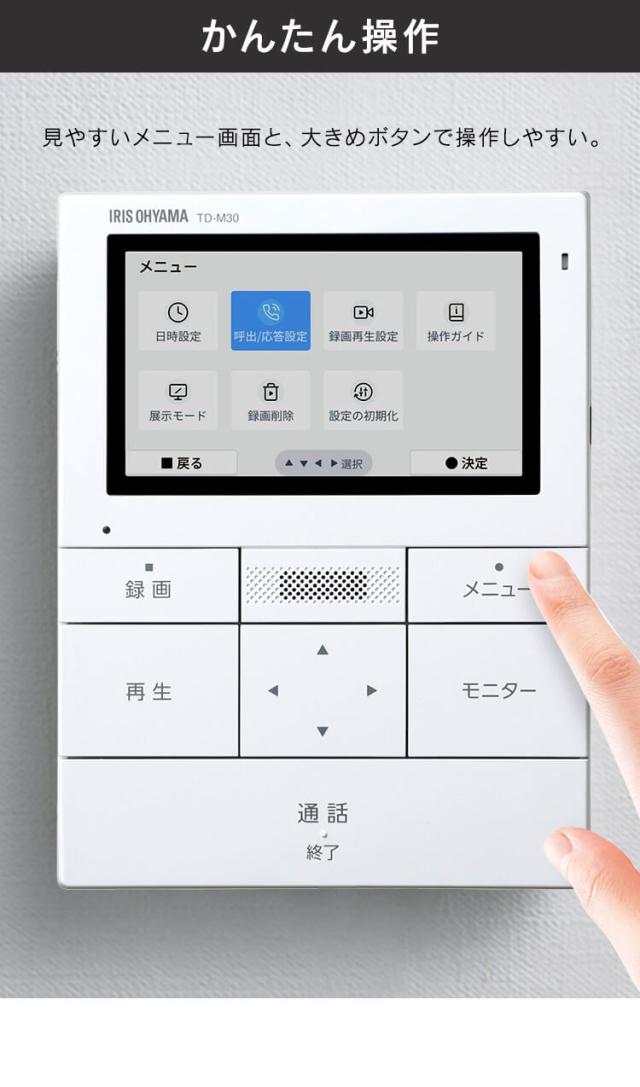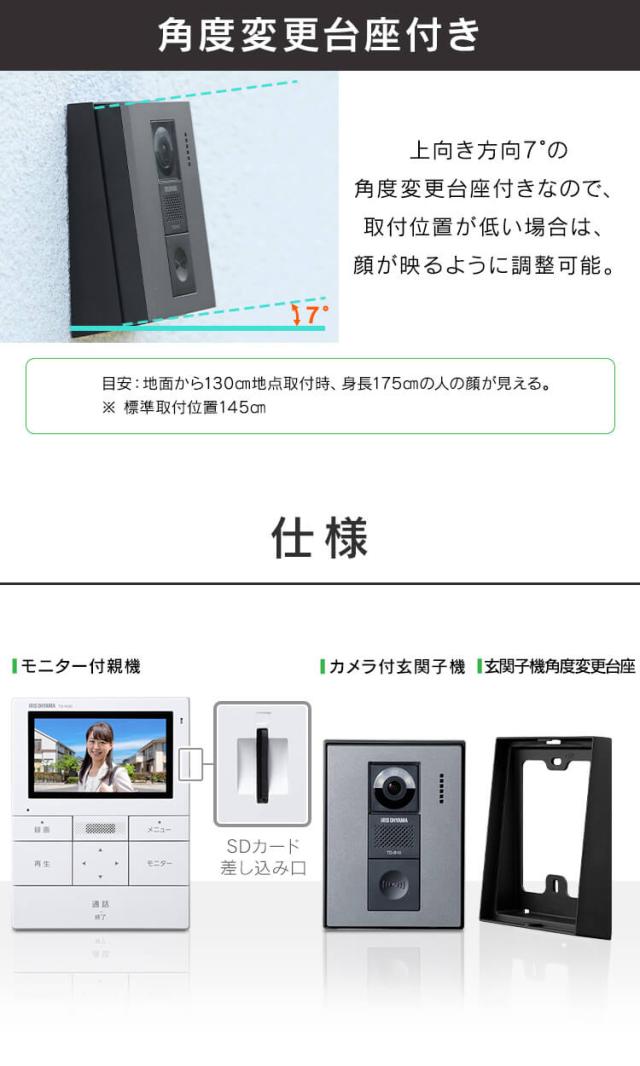 テレビドアホン 録画機能 インターホン ドアホン カメラ付き モニター付き 防犯 自動録画 子機 親機 防犯カメラ 監視カメラ モーション検知 動体検知 インターフォン ドアフォン ホワイト/ガンメタリック アイリスオーヤマ TD-SM3010T-WSH 送料無料 安心延長保証対象