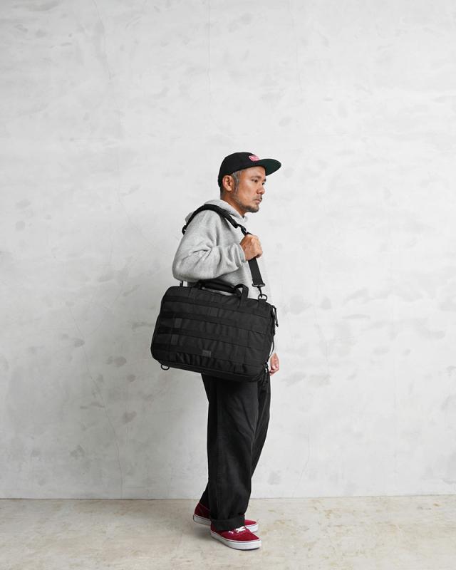 ミリタリーをコンセプトにしたSPEARシリーズのリファインモデル。止水ファスナーやアクセサリー類の外付け装着可能なモーリーシステム、耐久性など細部にいたるまで、ミルスペックの基準を満たした機能を搭載しています。摩擦強度、引裂き強度、引張り強度などに優れ、非常に耐久性の高い『1680Dコーデュラバリスティックナイロン』を採用。 取り外し可能なショルダーストラップのロゴパッチまで、オールブラックでより洗練され、幅広いシーンにマッチするデザインになっています。バックパック、ショルダー、ブリーフケースと3通りの仕様が可能で、ビジネスでも遊びでも、どんなシーンにも対応する3WAYパックです。メインコンパートメントは二つに大きく開き、荷物も一目瞭然。ビジネスや通学などにうれしい15インチのノートがすっぽり入るPCコンパーメントやオーガナイズ機能を備えています。