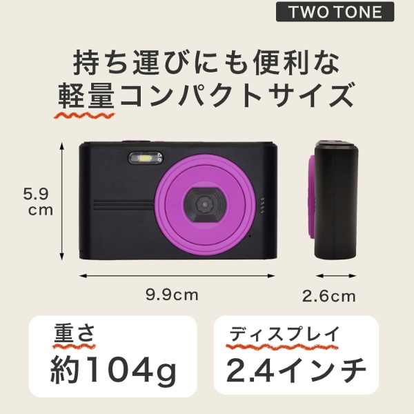 デジタルカメラ TWO TONE KEIYO ケーヨー 4400万画素 FULL HD動画撮影 デジタルズーム16倍 ブラック×パープル NT-DC001-BPL