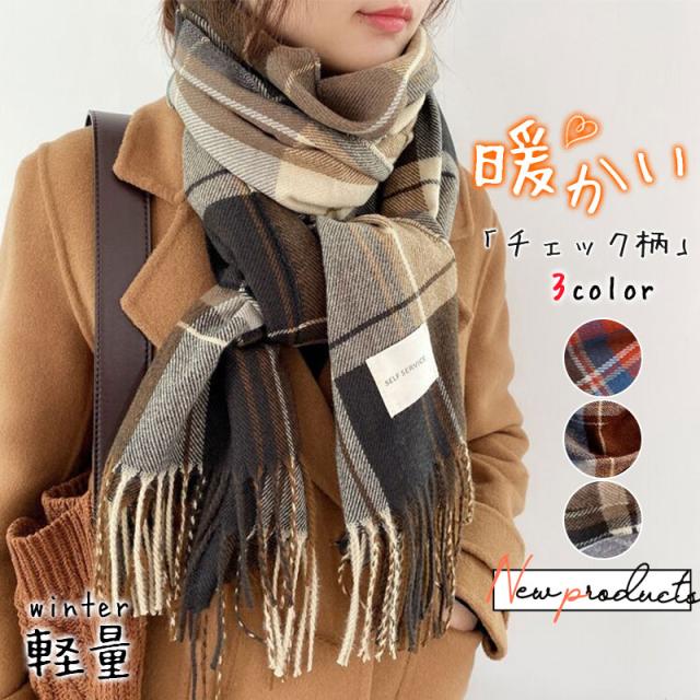 マフラー ストール レディース チェック柄 大判 スカーフ おしゃれ 暖かい 可愛い 防寒 通勤 通学 柔らかい 温活 冷え対策