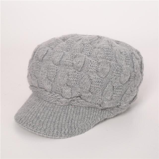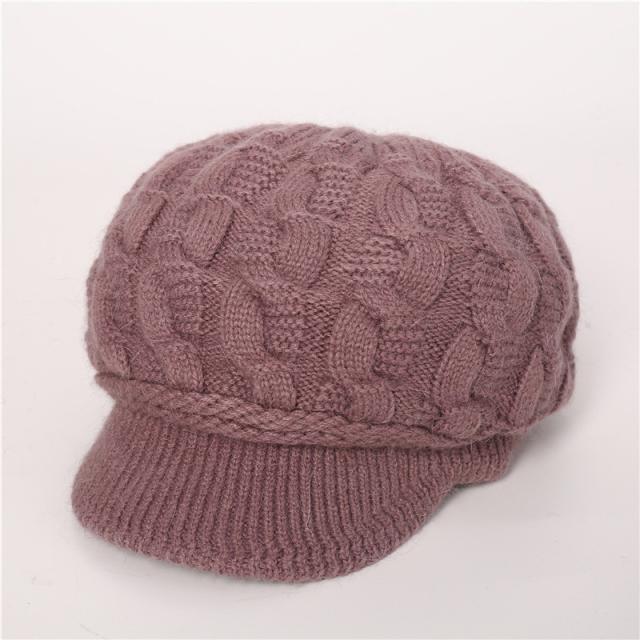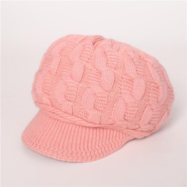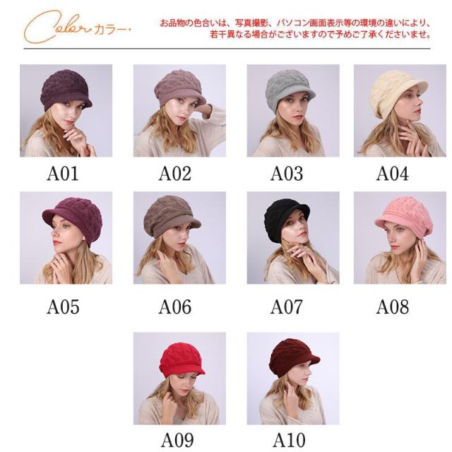 ニット帽 レディース ニットキャップ つば付き 帽子 ベレー帽 ハンチング 厚手 ケーブル編み 暖かい 防寒 秋冬 無地 自転車
