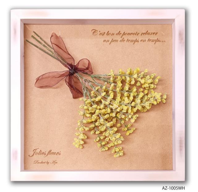 花束のアートフレーム Jolies fleurs AZ-1005WH フレームカラー アンティークホワイト花束の色 イエロー 背景 MDF+レーザー加工 W265×H265×D45mm 店舗 カフェ ラウンジ ロビー ホテル 法人 kar-11708515s2 店舗 カフェ ラウンジ ロビー ホテル 法人 アートパネル アート