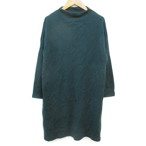 【中古】スピック&スパン ニットワンピース ひざ丈 長袖 ハイネック ウール 無地 F 緑 グリーン /FF19 レディース
