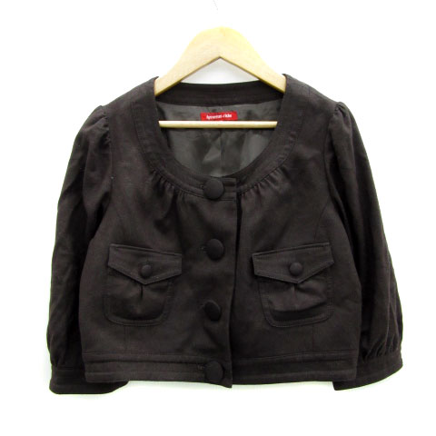 【中古】アプワイザーリッシェ ノーカラージャケット 七分袖 ショート丈 総裏地 シングルボタン 2 茶色 レディース
