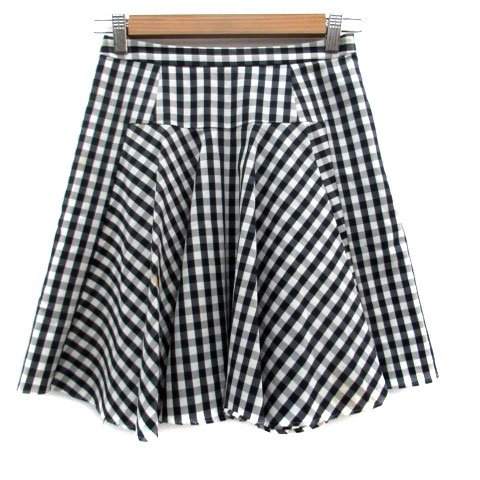 【中古】チェスティ Chesty フレアスカート ミニ丈 ギンガムチェック柄 黒 ブラック オフホワイト /HO41 レディース