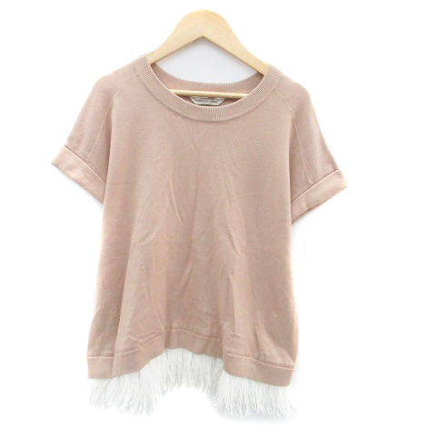 【中古】トラッゾドンナ Torrazzo Donna ニット カットソー ラウンドネック 半袖 フェザー 茶色 ブラウン レディース