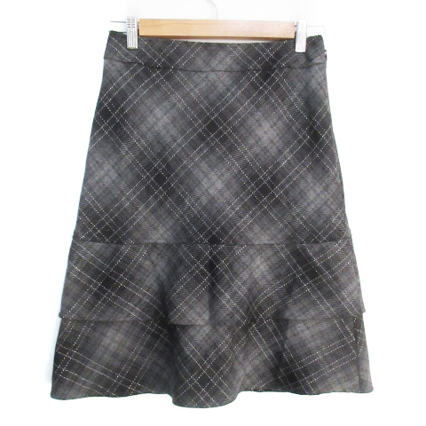【中古】23区 オンワード樫山 フレアスカート ティアードスカート ミモレ丈 ラメ チェック柄 38 グレー 黒 レディース