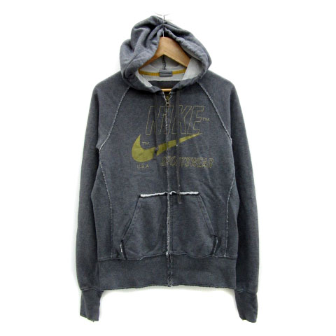 【中古】ナイキ NIKE ジャケット パーカー ミドル丈 ロゴ ジップアップ M グレー /MS19 レディース