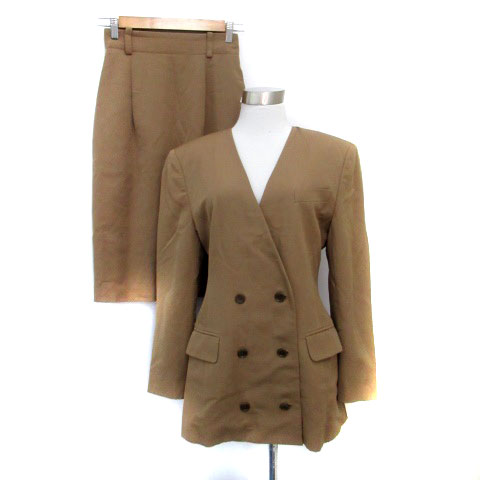 【中古】アリスバーリー セットアップ ノーカラージャケット ダブルボタン タイトスカート ウール 茶色 レディース