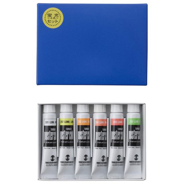 ターナー色彩 ポスターカラー 蛍光6色セット PC06L 11ml