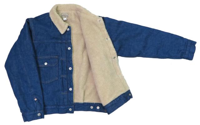 1950年代頃のデニムジャケットをベースにサイズやディテールをアレンジした裏ボアタイプのランチジャケット。