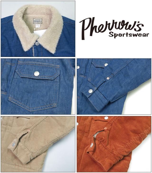 フェローズ Pherrow' 長袖 ランチジャケット ボア コーデュロイ デニム 23W-PRCJ1