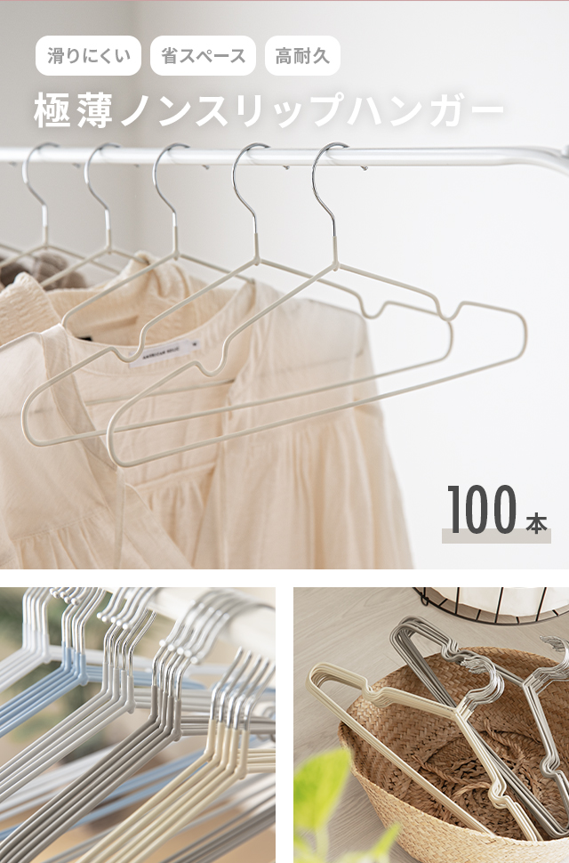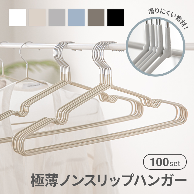 ハンガー PVCコーティングハンガー すべらない 滑らない 100本セット 軽い 頑丈 滑り止め 丈夫 41cm 収納 スリム 省スペース 新生活 引っ越し コート ランドリー おしゃれ