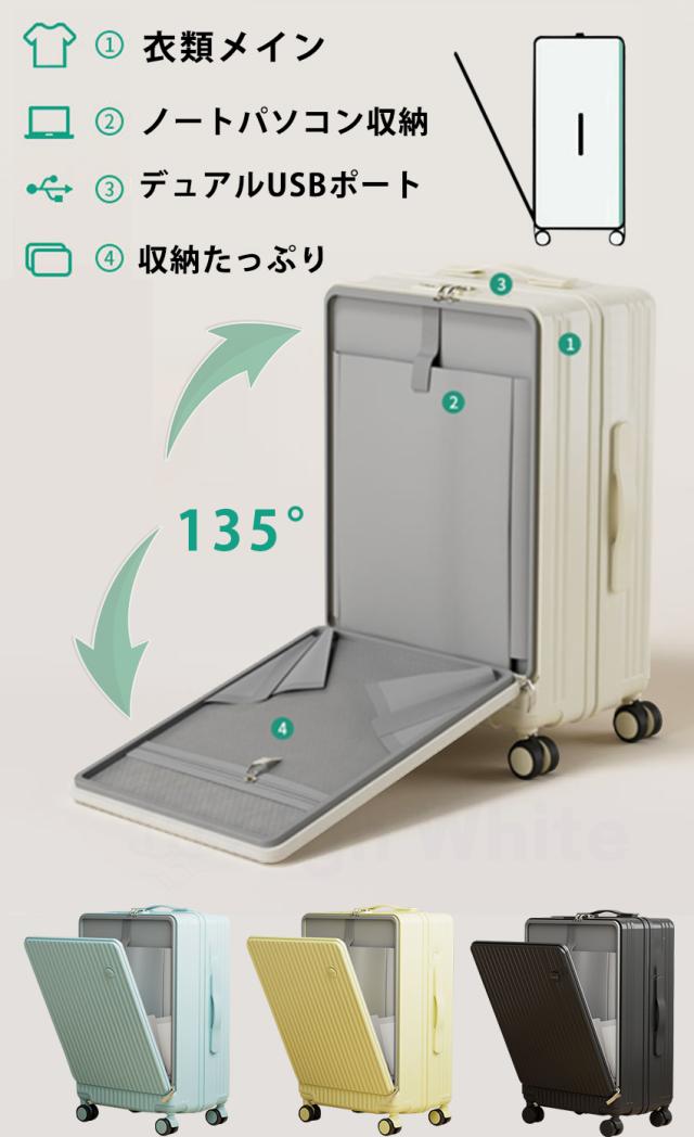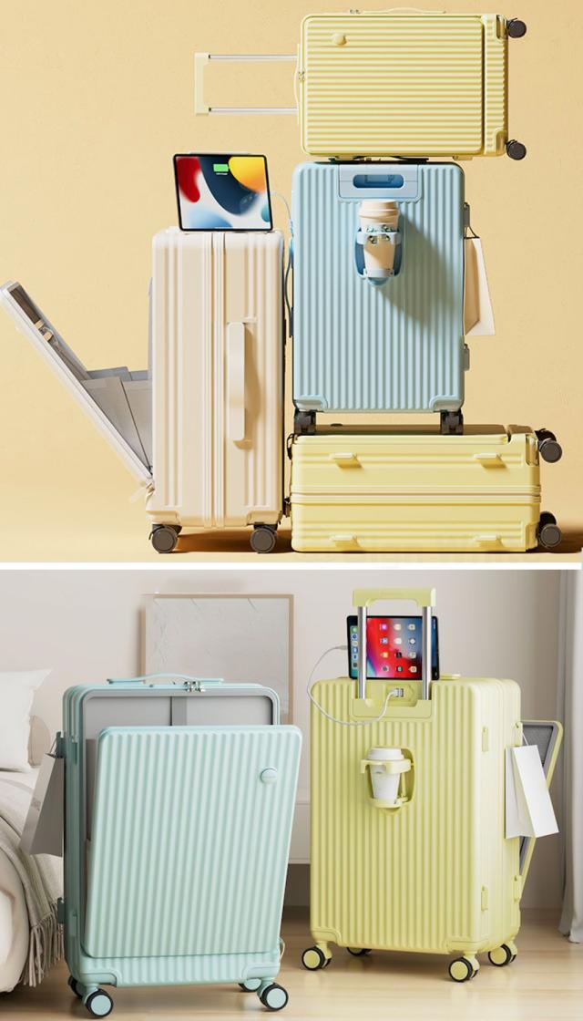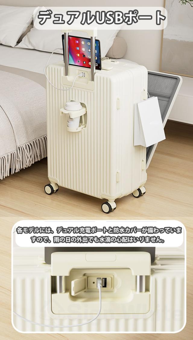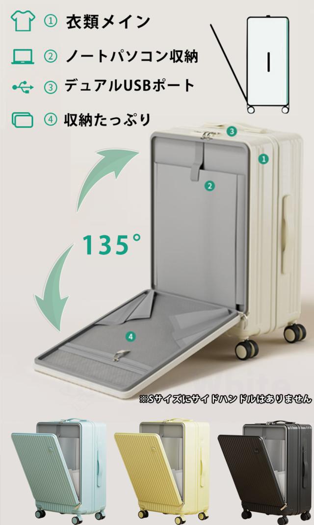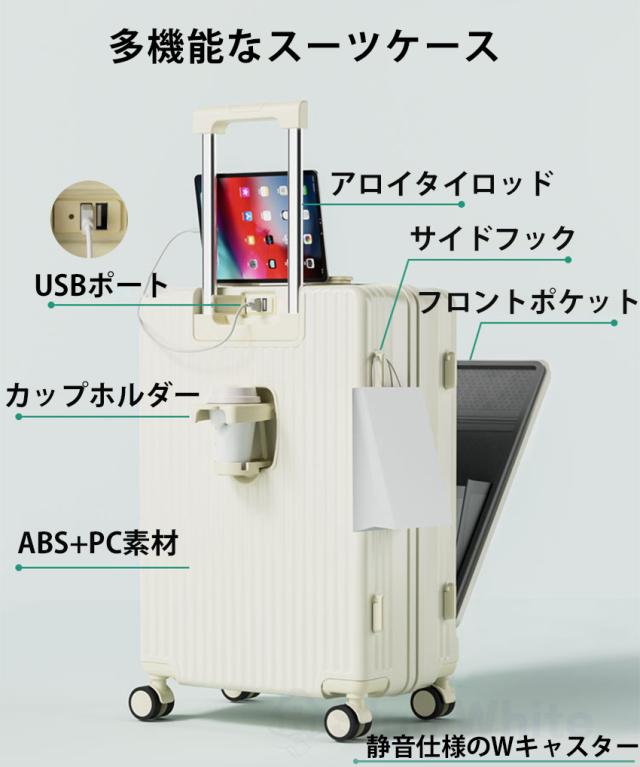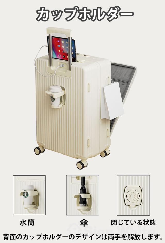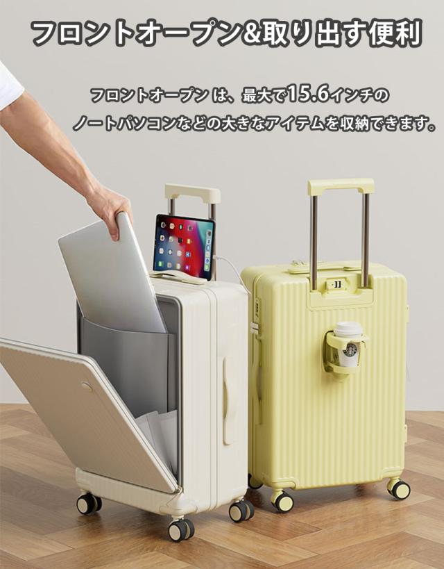 スーツケース フロントオープン 機内持ち込み 前開き キャリーケース Sサイズ かわいい ドリンクホルダー キャリーバッグ