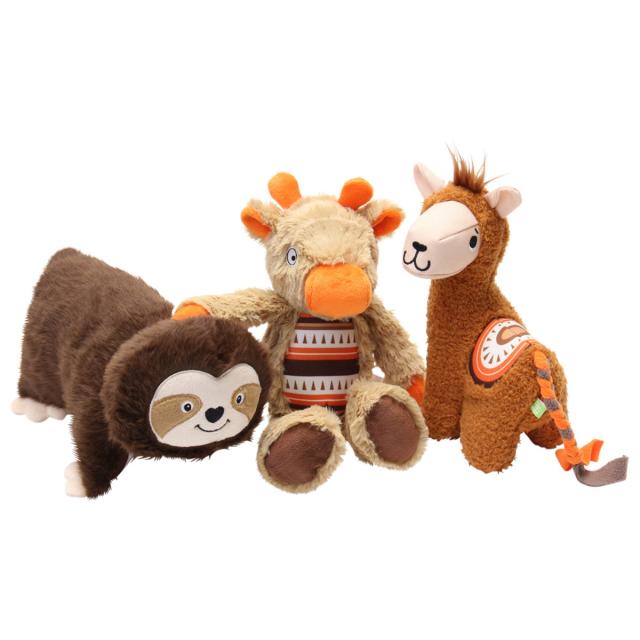 ワンちゃんが喜ぶツボを押さえた仕掛けがいっぱい詰まったぬいぐるみ系犬用おもちゃシリーズです。ほどよいサイズ感と優しい手触り、スクウィーカーも入っているので音でも楽しめます。