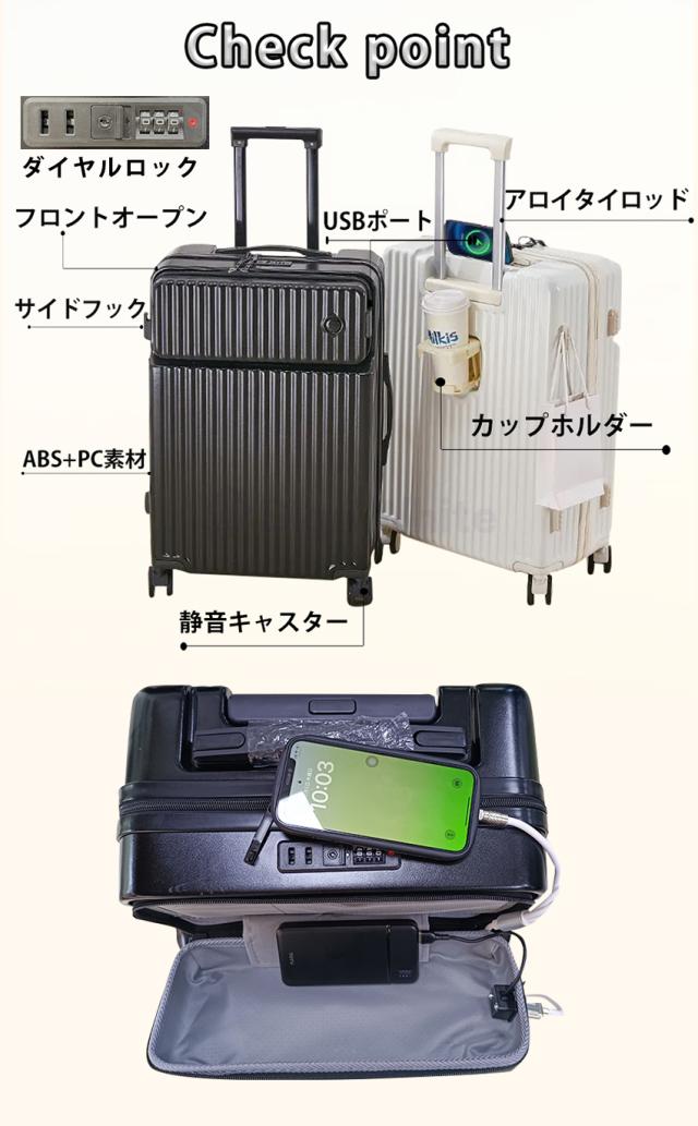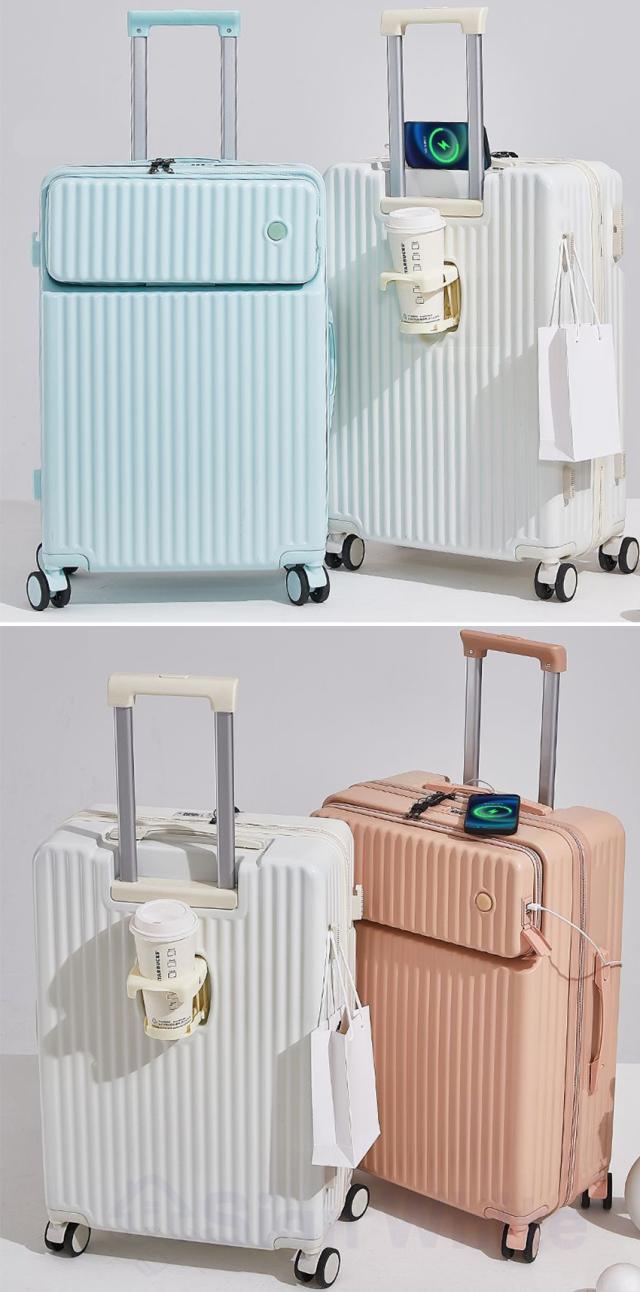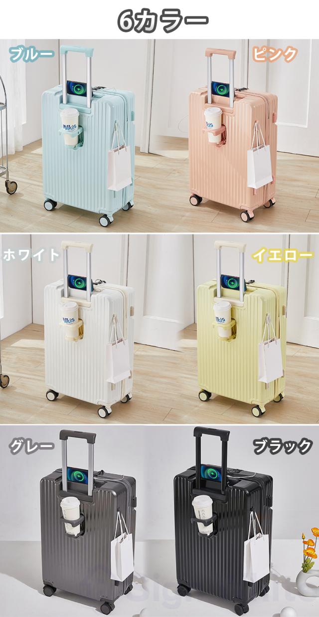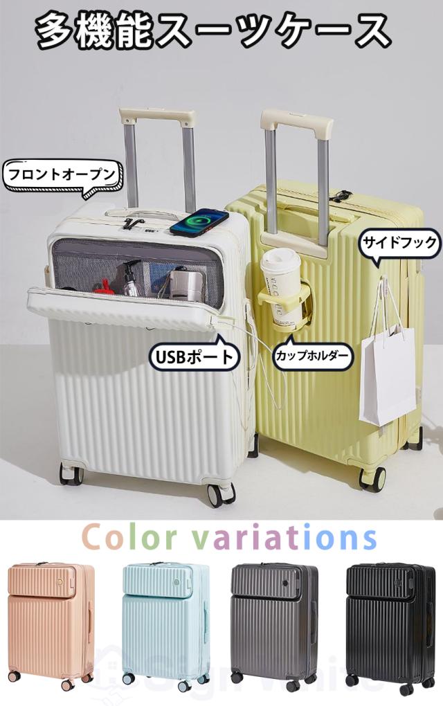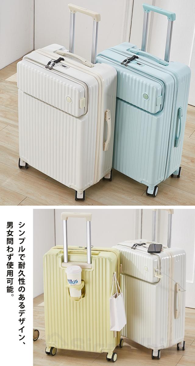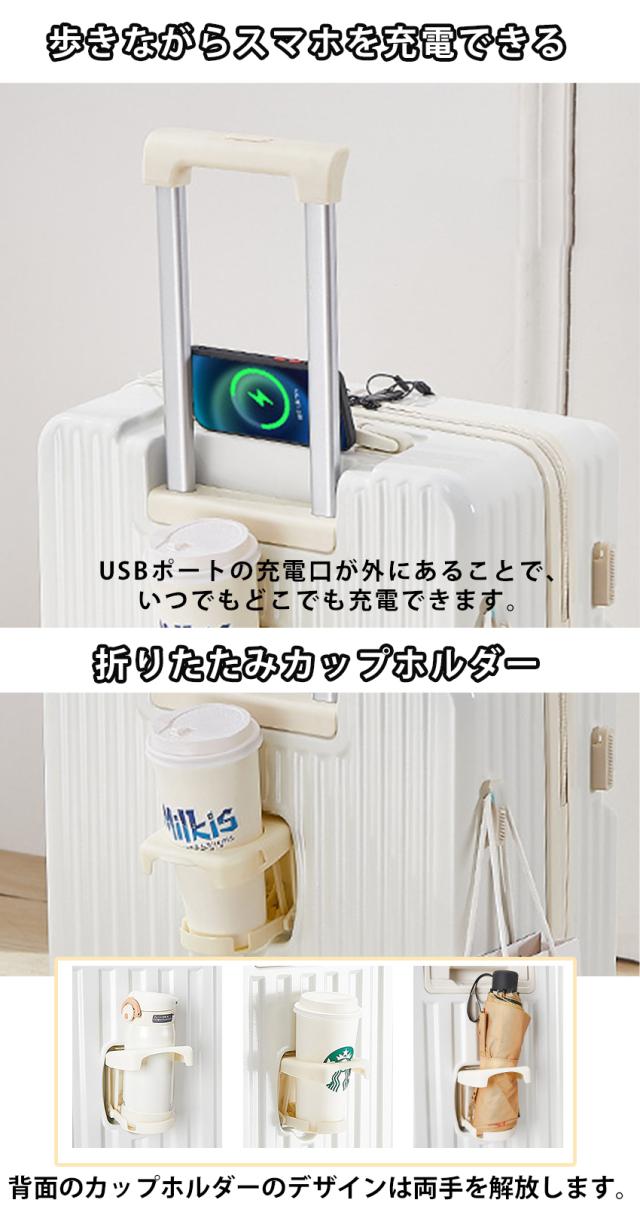 スーツケース フロントオープン 機内持ち込み 前開き キャリーケース Sサイズ かわいい ドリンクホルダー キャリーバッグ