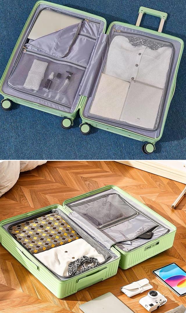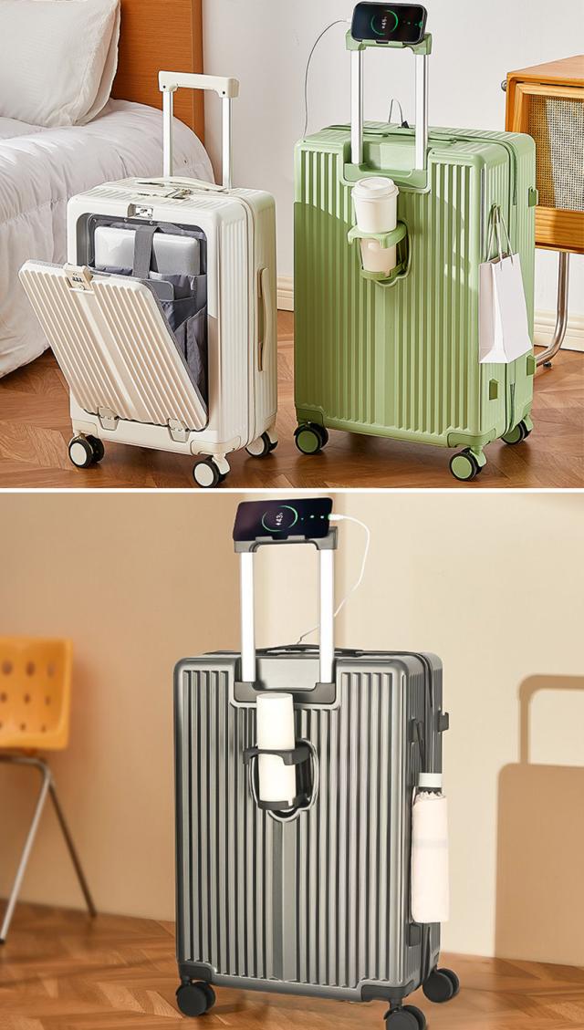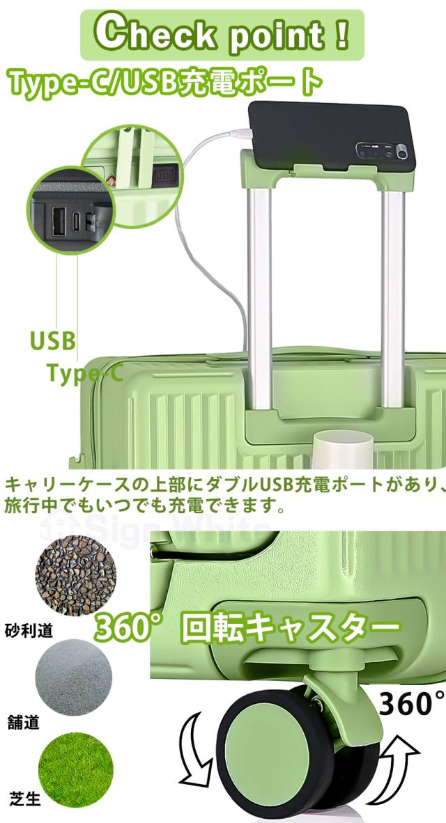 スーツケース フロントオープン 機内持ち込み 前開き キャリーケース Sサイズ かわいい ドリンクホルダー キャリーバッグ