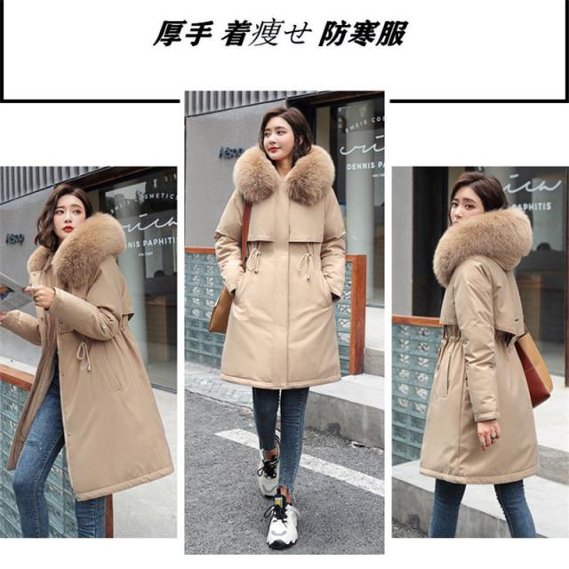 中綿コート フェイク毛皮 アウター 冬 裏起毛 フード付き 中綿パーカー レディース ロングコート暖かい 厚手 防風 防寒 送料無料