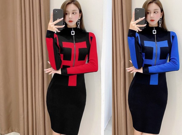 キャバドレス キャバワンピ ミニドレス キャバ・フォーマル・パーティーに!上品でエレガンなモノトーン バイカラー配色ニット生地ミニドレス キャバドレス