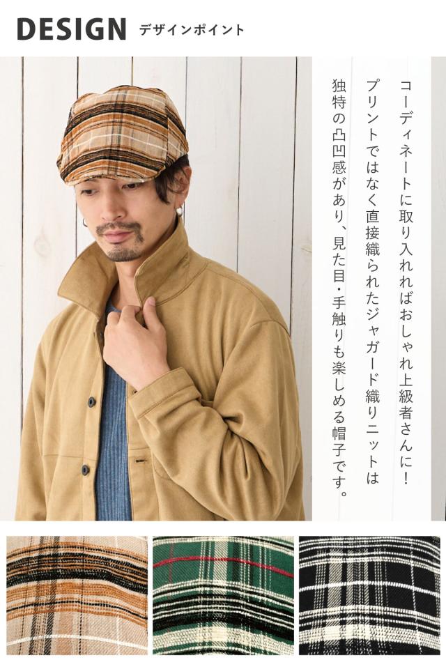ジャガード織りによるタータンチェック柄ハンチング帽