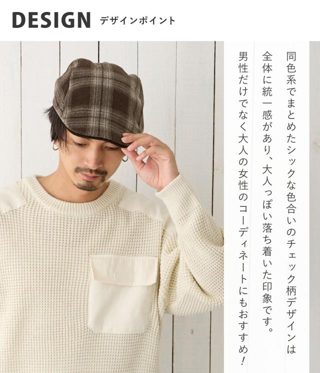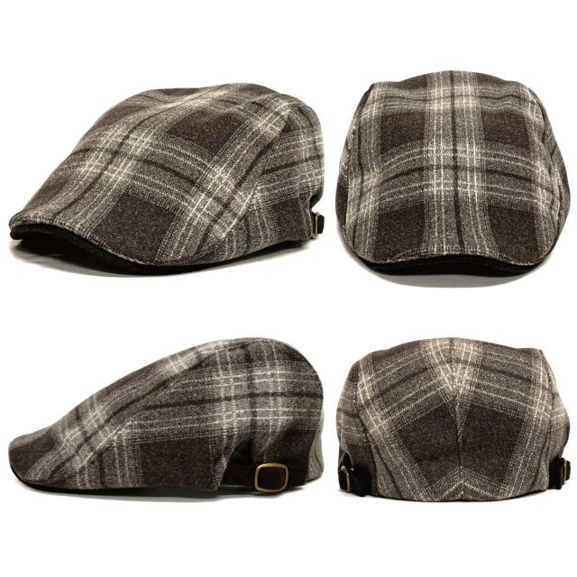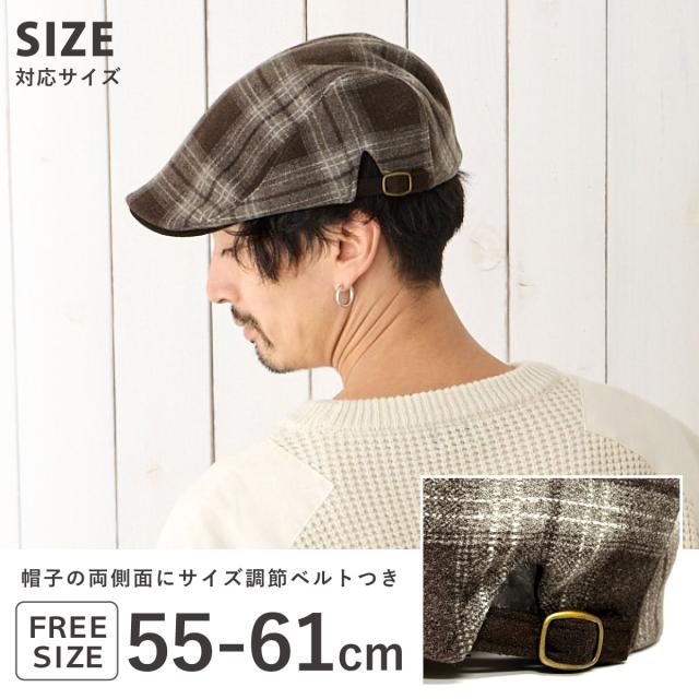 ハンチング帽子 ウール混 暖かい メンズ 帽子 ゴルフ 秋冬 シックなチェック柄 ハンチング 55cm-61cm サイズ調節 ゆったり hun-672 BIG レディース 帽子 大きいサイズ 大人 カジュアル マニッシュ 暗め お洒落 ギフト プレゼント