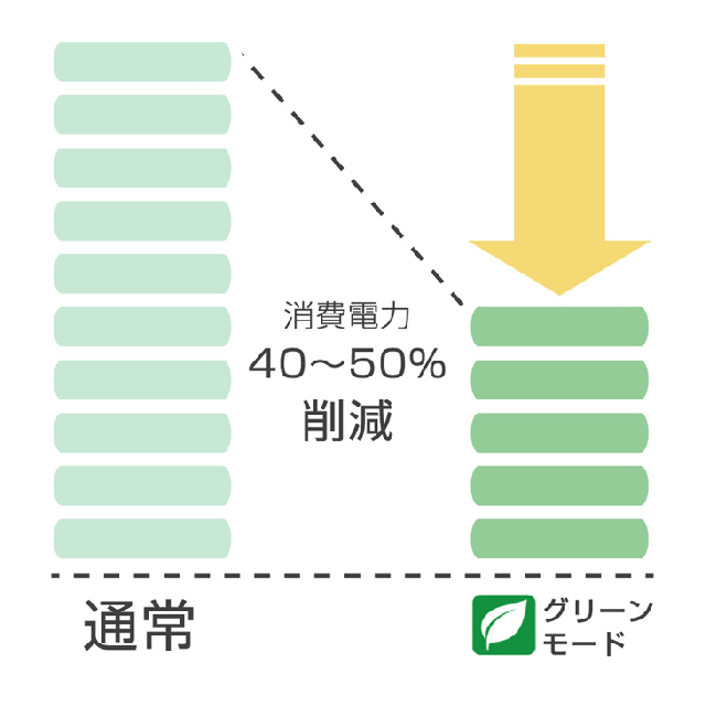旧モデルと比較し、グリーンモード搭載の現モデルの消費電力は24%〜43%減となります