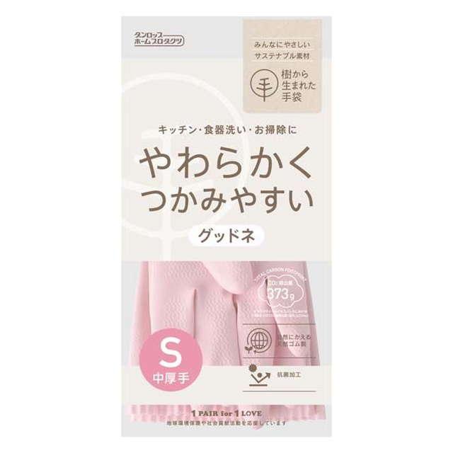 ゴム手袋 キッチン 食器洗い お掃除用 天然ゴム グッドネ 中厚手 Sサイズ ピンク サステナブル素材 抗菌加工