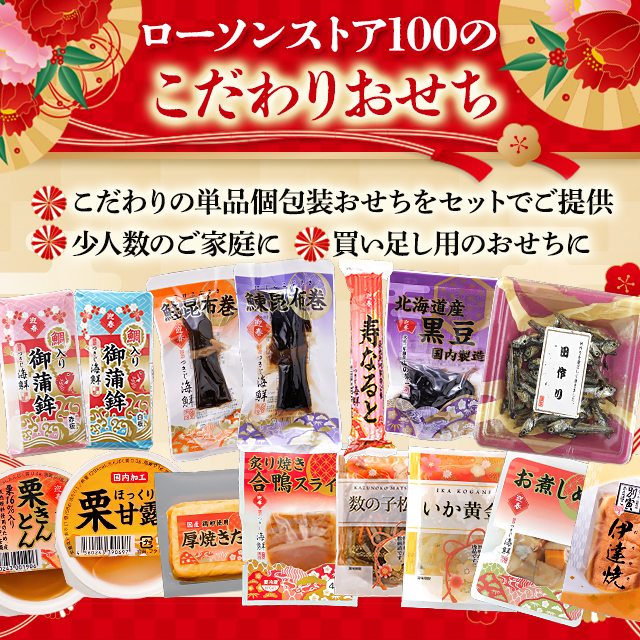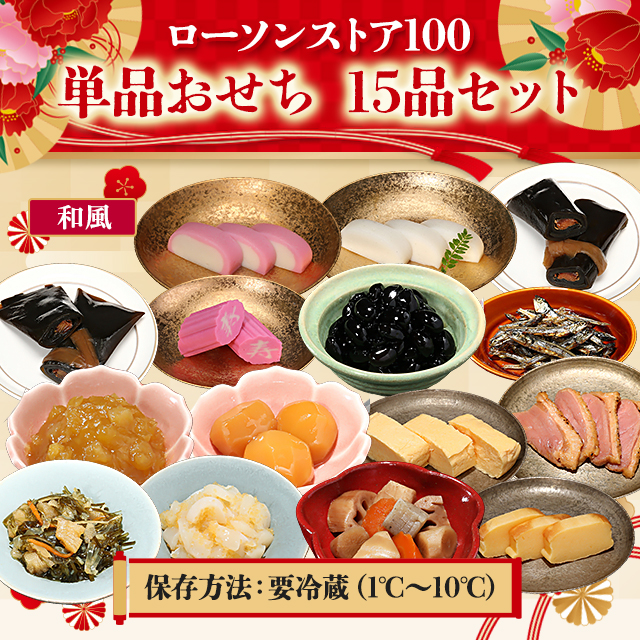 ・ローソンストア100の「単品おせち」シリーズから、特に人気の15種類をセットにしました。