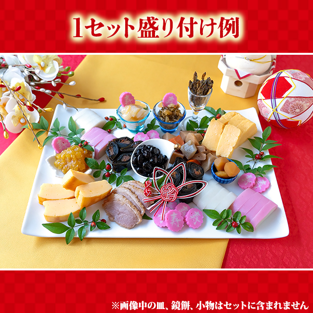 ・お手持ちのお重に詰めてもよし、大きめのお皿に盛りつけて「ワンプレートおせち」にしてもよし。