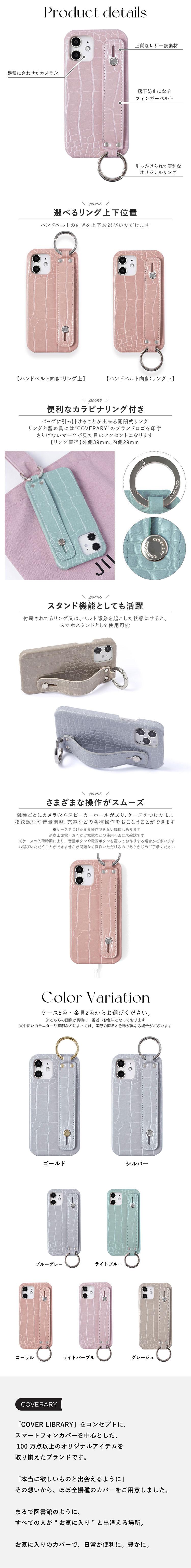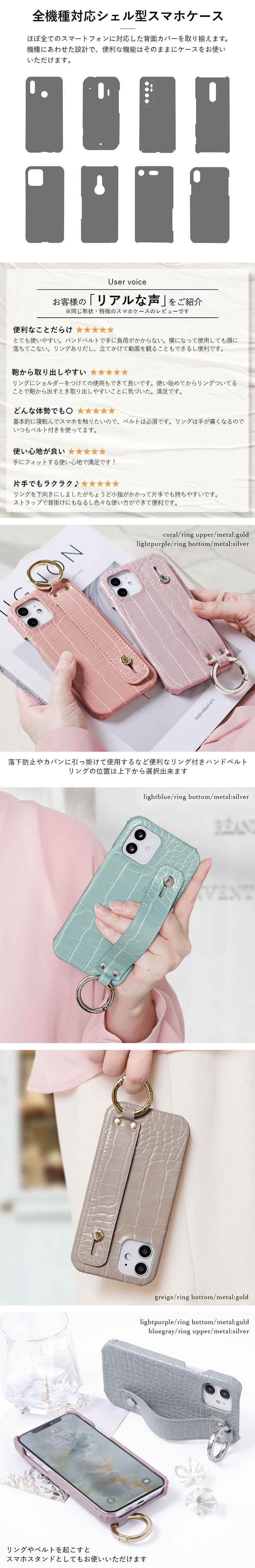 ■高級感のあるクロコダイル調ハンドベルト付きケース全5色。