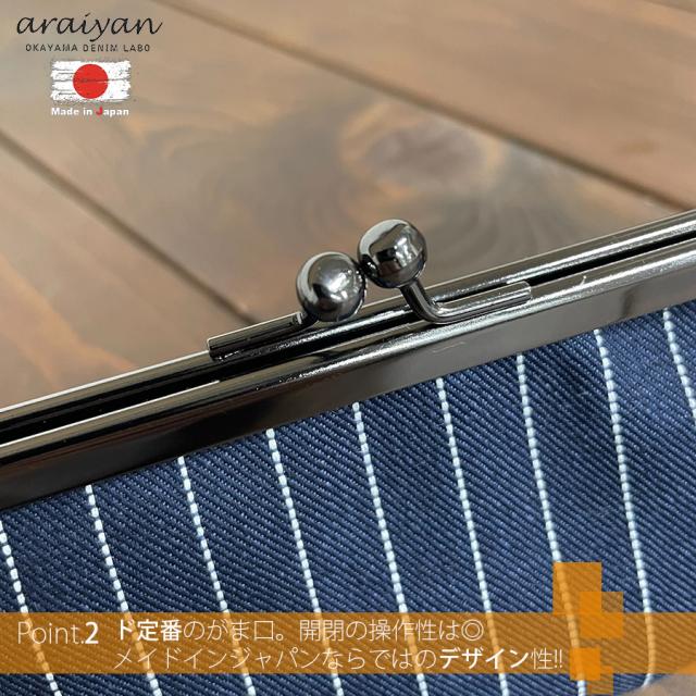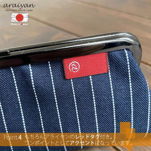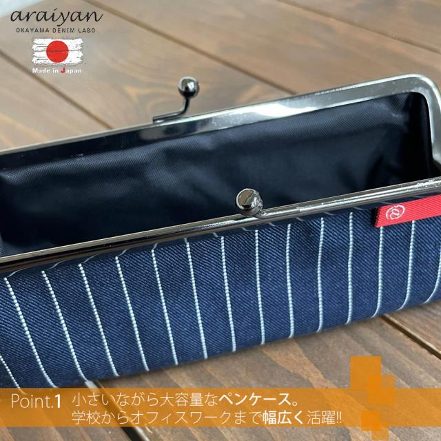 【araiyan】 アライヤン 岡山デニム 日本製 パース ペンケース がま口ペンケース メガネケース 眼鏡入れ 筆箱 ふでばこ ペンケース 筆入れ 大人 新入学 新学期 文具 普段使い 文房具 仕事 勉強 男性 女性 カジュアル デニム雑貨 ジーンズ素材 AS14003 配送区分N