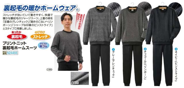 プリントニット 裏起毛ホームスーツ 全3種 ルームウェア 部屋着 上下セット メンズ 紳士服 シニア 男性 グレー ネイビー グレンチェック ヘリンボーン ピンストライプ オシャレ ホームウェア セットアップ シニアファッション 40代 50代 60代 70代 80代 父の日 お父さん 秋物 冬物 秋冬