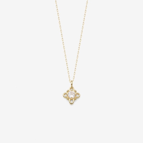 エステール(ESTELLE)/K10 イエローゴールド ローズクォーツ フラワー ネックレス