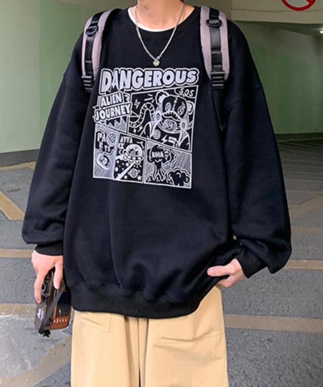 大人気のアメカジイラストプリントのスウェットが登場!色は定番のブラック、ホワイトとグレー3色展開 コーディネートに関して、アウターには、ダウンジャケット、コーチジャケット、ボアフリースなど今期のトレンドアイテムが最適。 スキニー、ラインパンツ、スニーカーとの合わせで、最旬のスポーツ、ストリートMIXコーデが完成。 チェック、ワイドパンツ、革靴と合わせるキレイめで、スタイリッシュなコーデも人気です。 デニムやチノパンに合わせてのカジュアルダウンや、スウェットパンツと合わせてのリラックススタイルもオススメ。 サコッシュやボディバック、トートバック、キャップなどの小物とも相性抜群です。 メンズ、レディースともに着用できるユニセックスモデルで、イベントやフェスでのカップルコーデ、友達同士のペアコーデにおすすめです。 原産国:中国