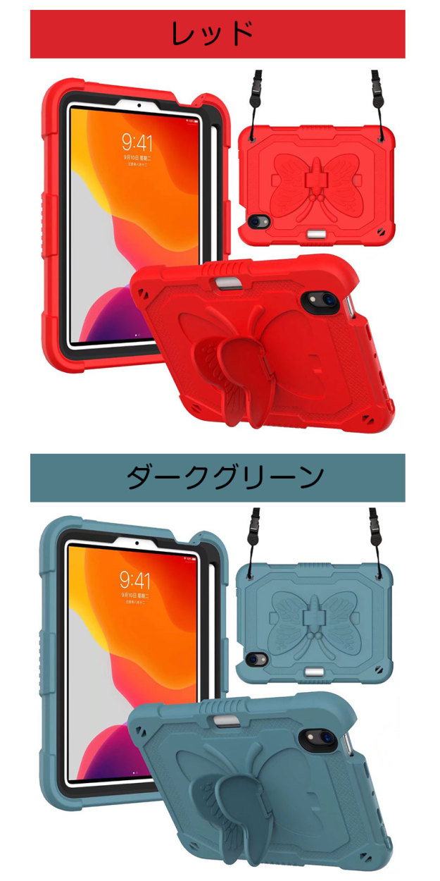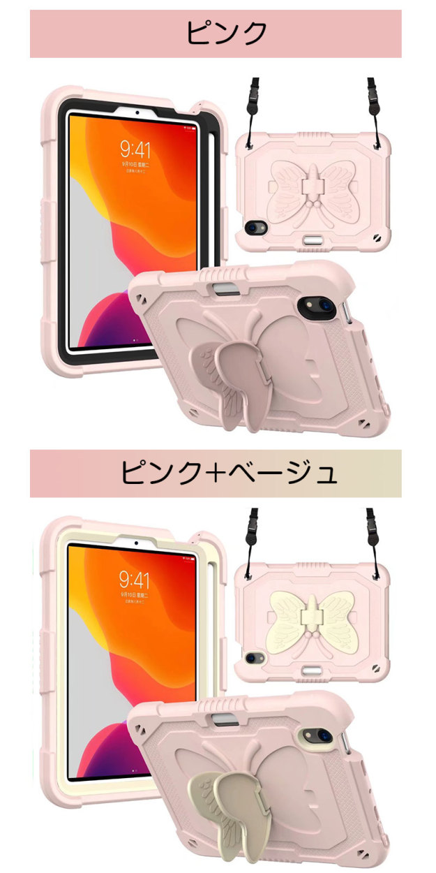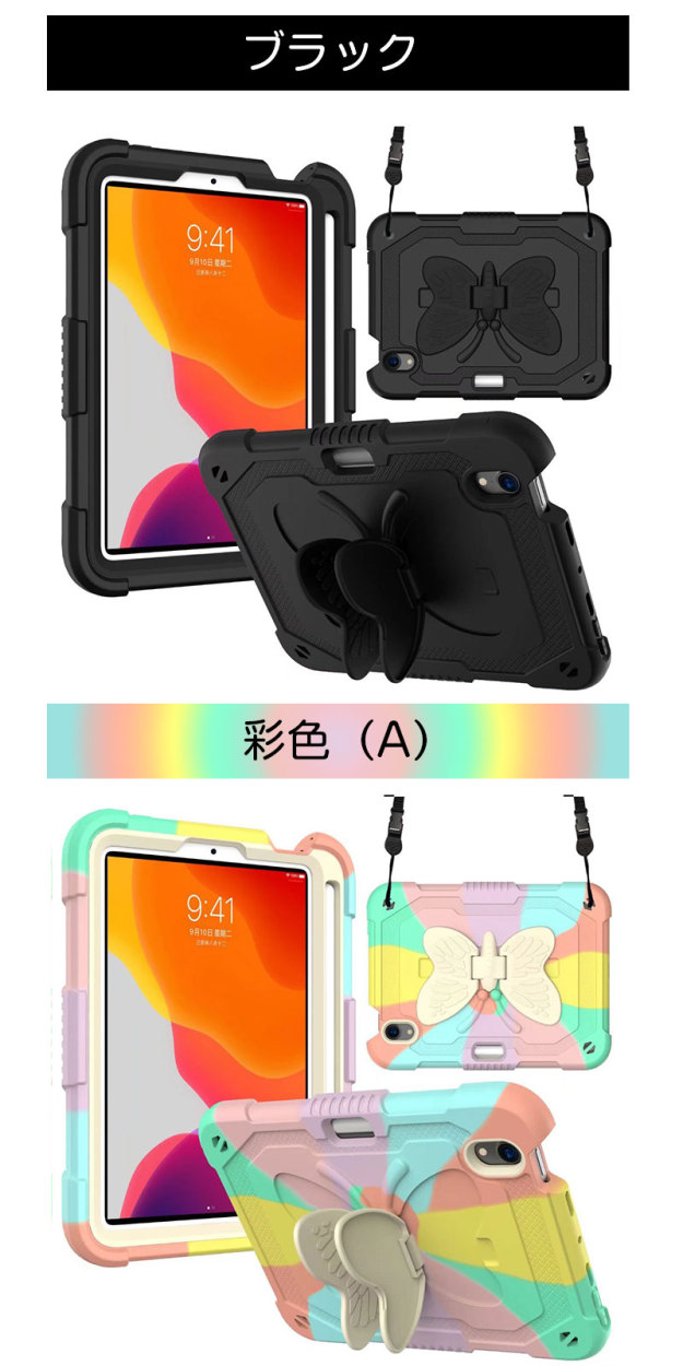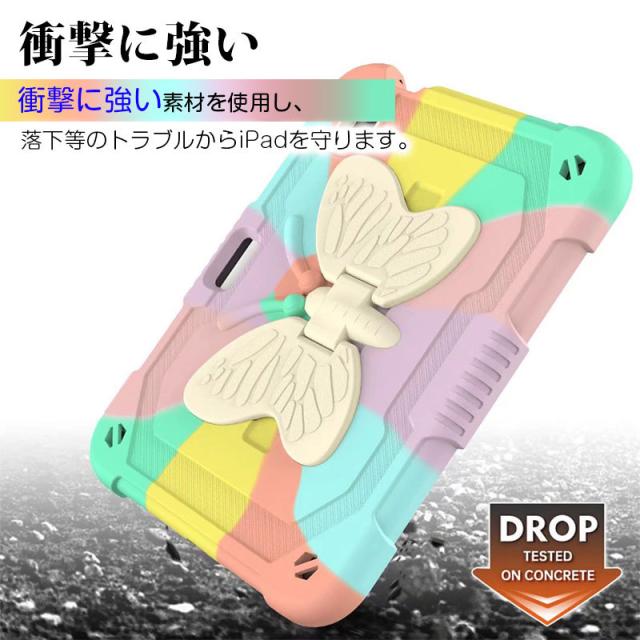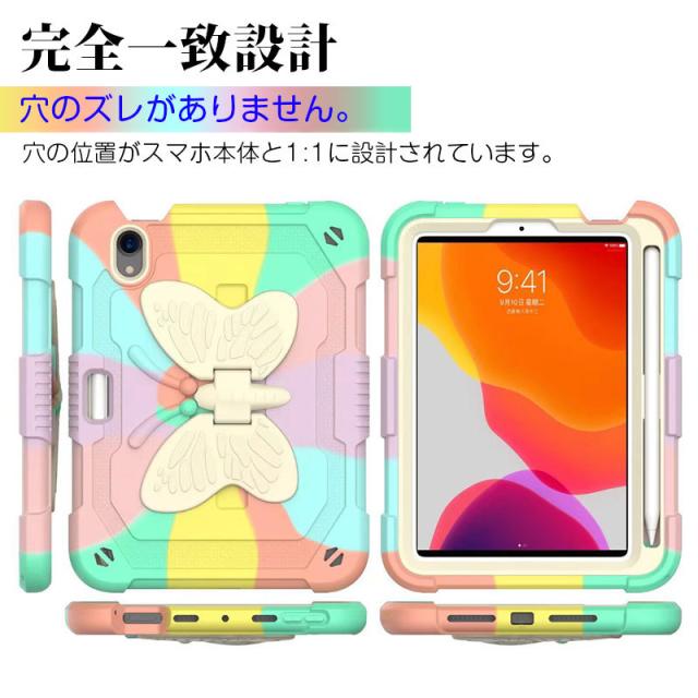 アイパッドケース iPad mini 第6世代ケース 蝶柄 キズ防止 iPad mini6カバー ストラップ アイパッドミニ第6世代ケース 二重構造 iPadミニ6ケース 衝撃吸収