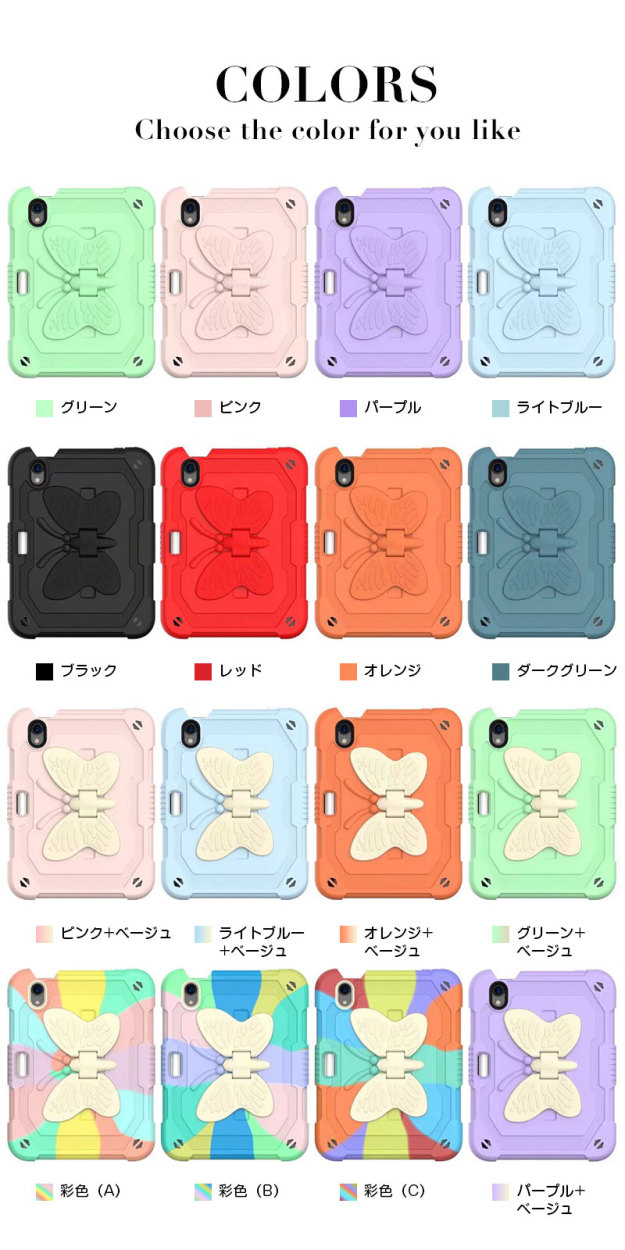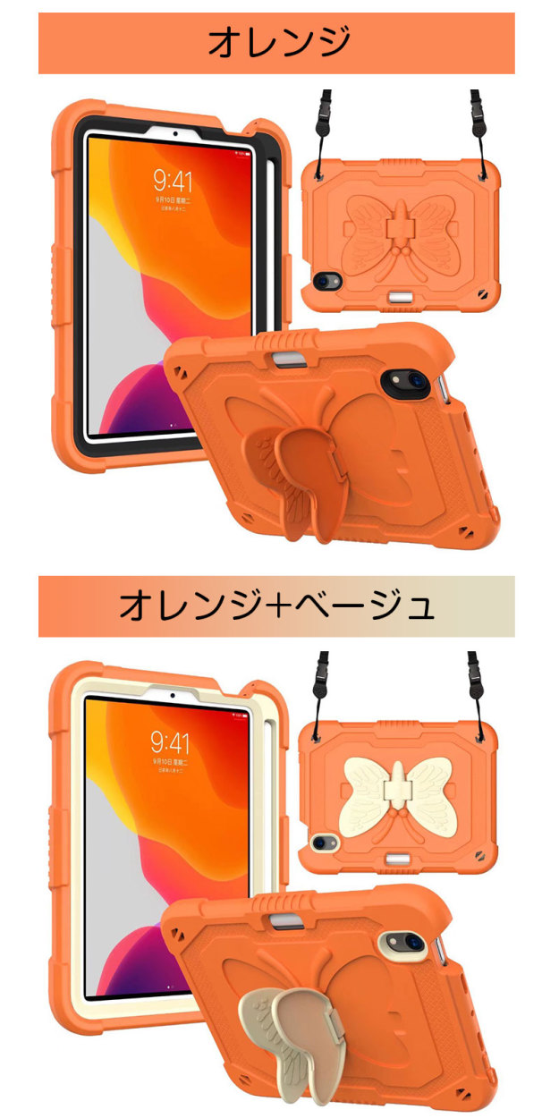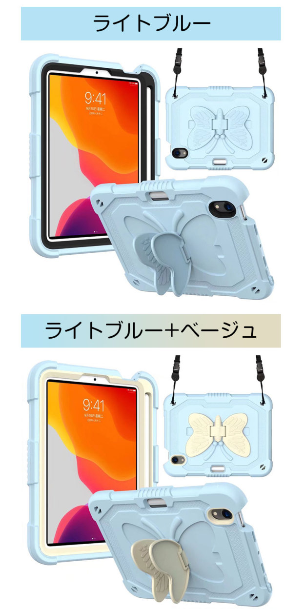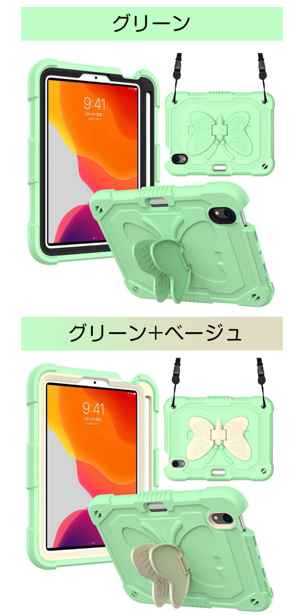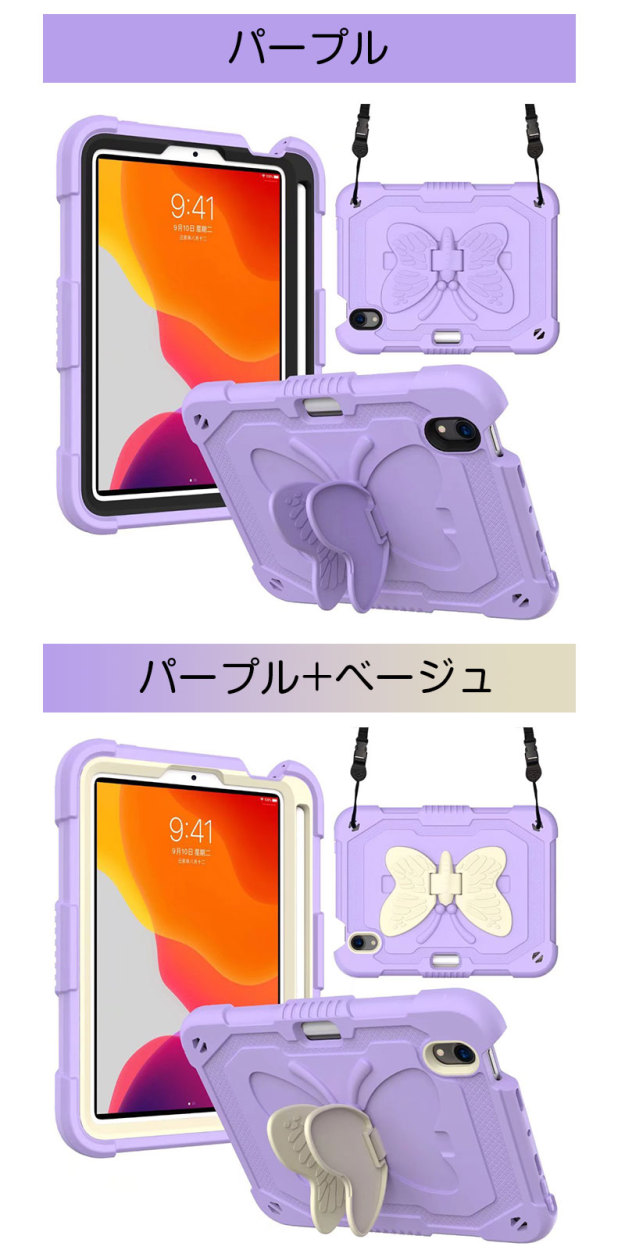 アイパッドケース iPad mini 第6世代ケース 蝶柄 キズ防止 iPad mini6カバー ストラップ アイパッドミニ第6世代ケース 二重構造 iPadミニ6ケース 衝撃吸収