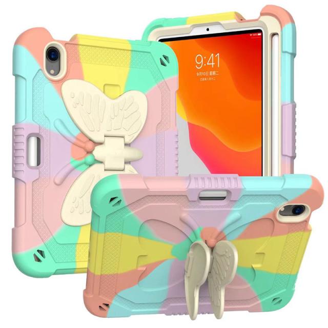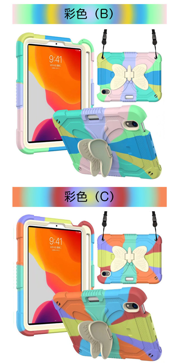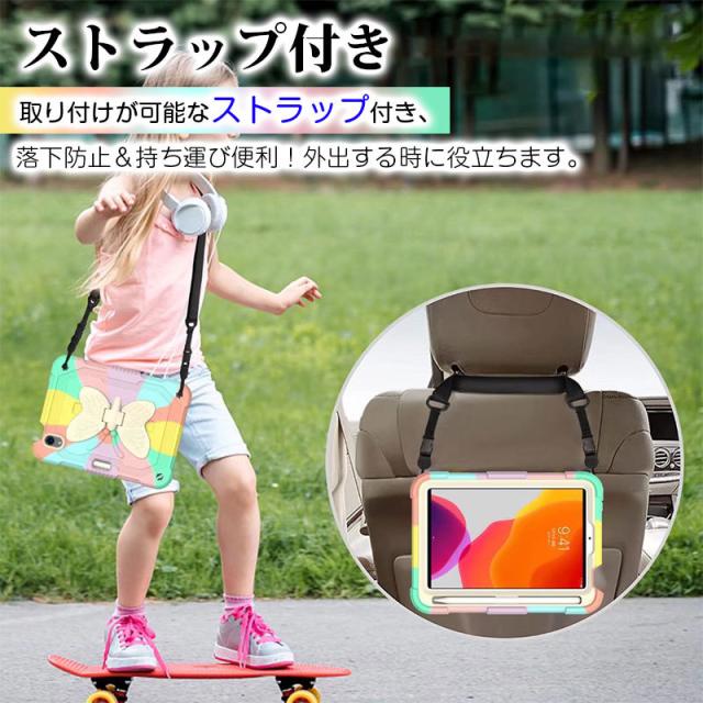 アイパッドケース iPad mini 第6世代ケース 蝶柄 キズ防止 iPad mini6カバー ストラップ アイパッドミニ第6世代ケース 二重構造 iPadミニ6ケース 衝撃吸収 iPad mini6ケースタブレットケース iP